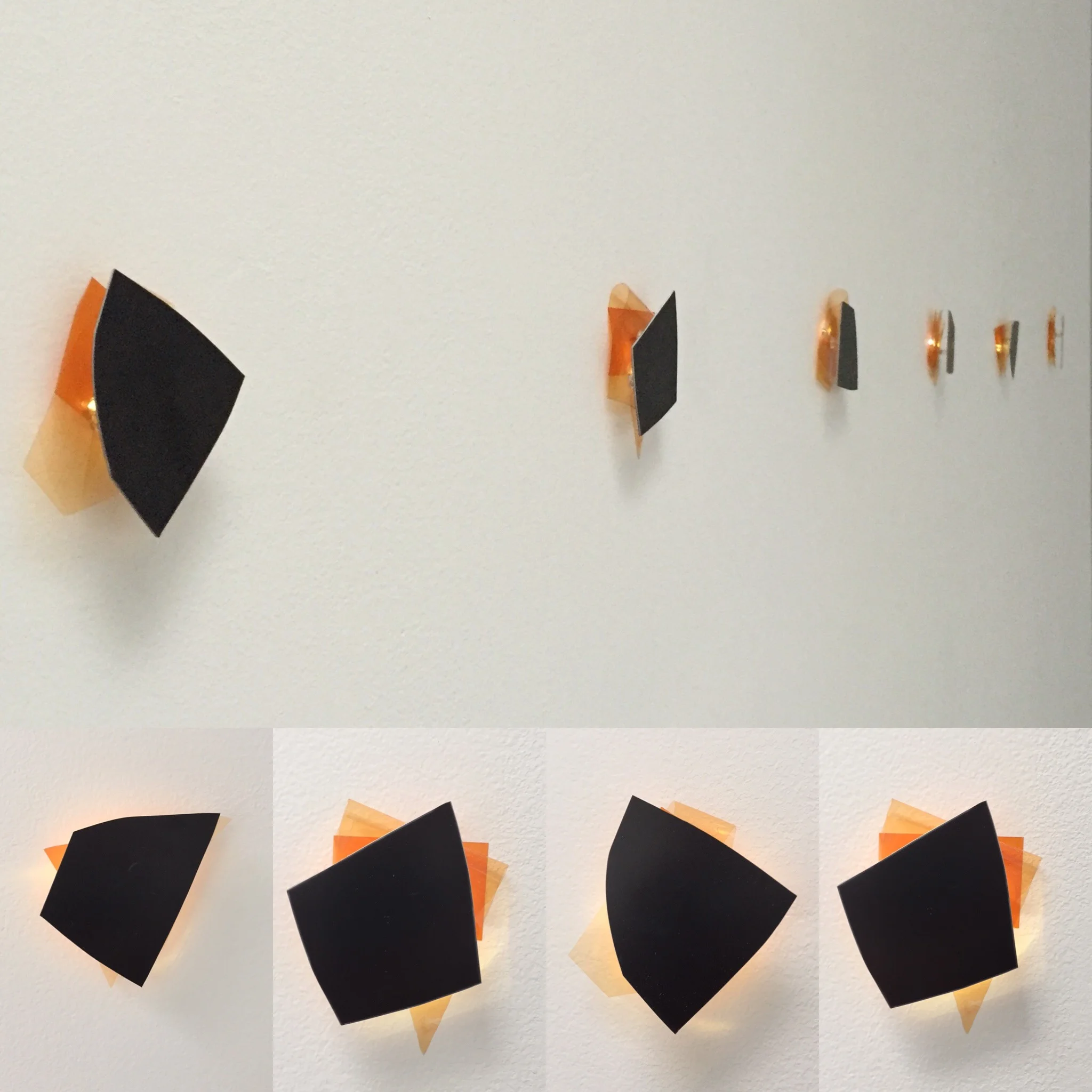 Acrylic mirror, led light, photo films. A series to be installed in a line. Dimensions variable. 2015