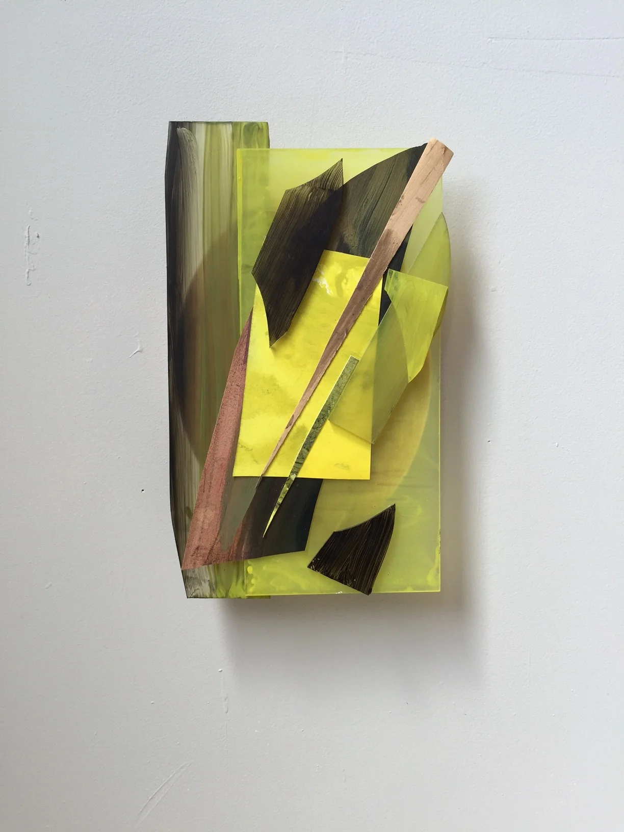 Acrylic, paper, photo film, vaneer, and plexiglas on panel. Approx 12x15 inches. 2014