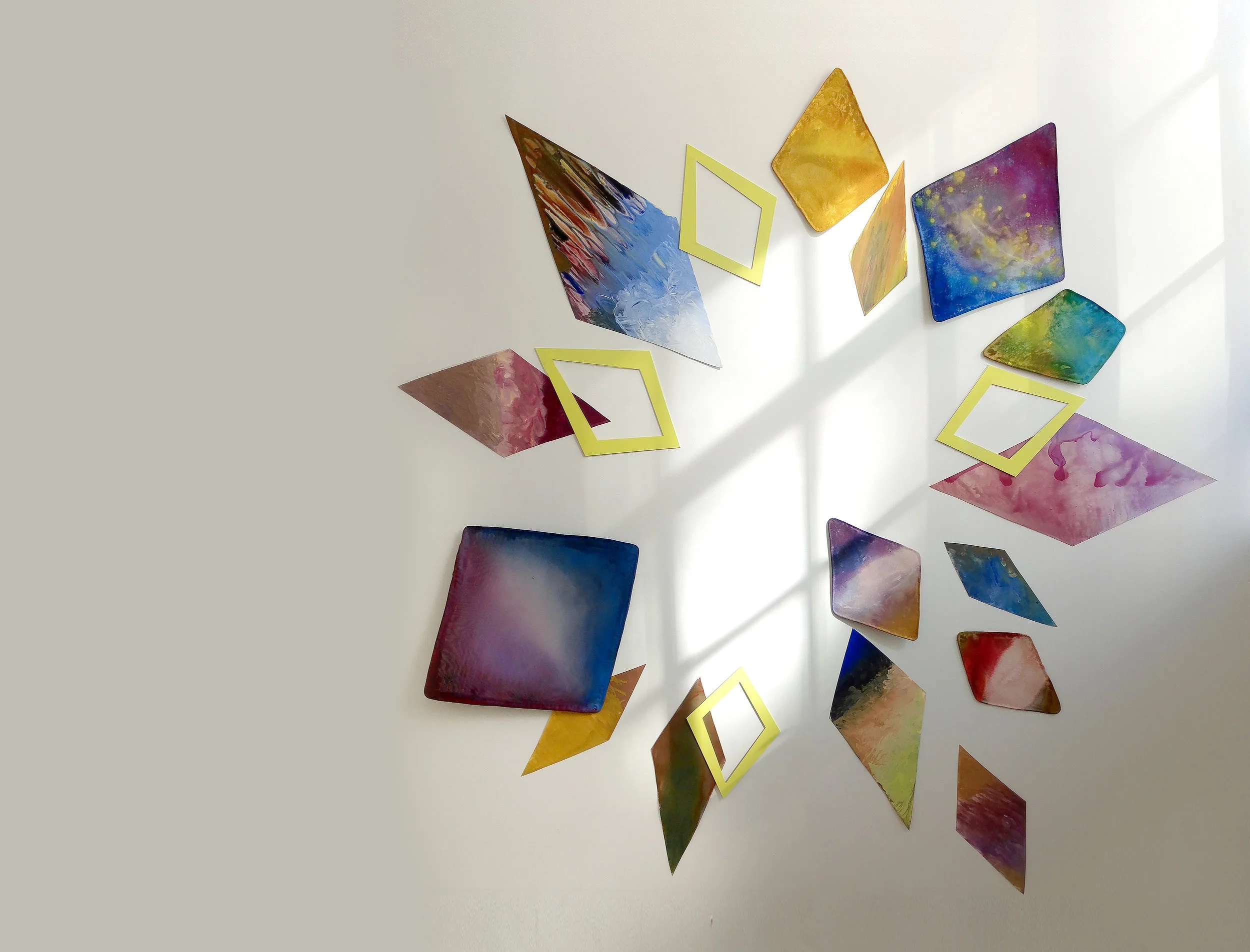 Acrylic and plexiglass on thumbtacks. 8 x 10 inches. 2015