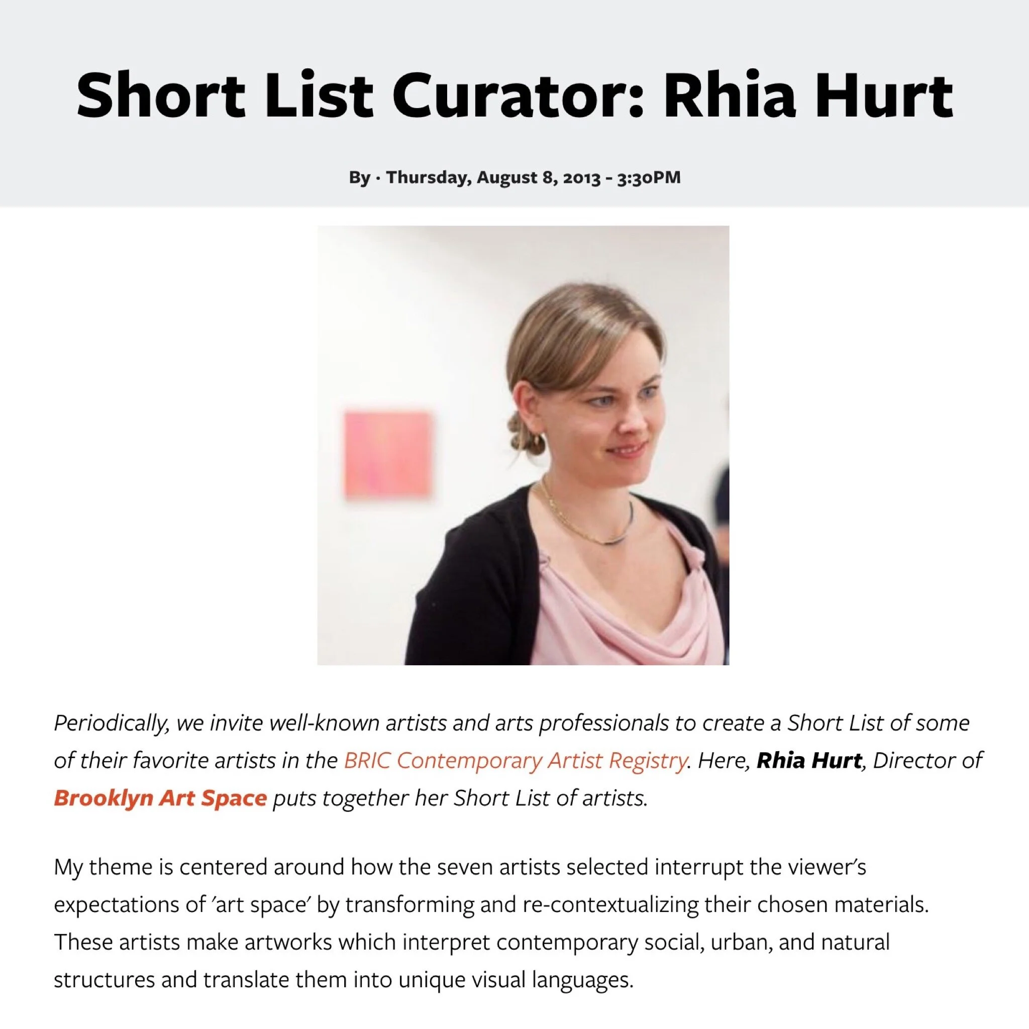 Michael Sorgatz Interview with Rhia Hurt, Art In Brooklyn, 2019