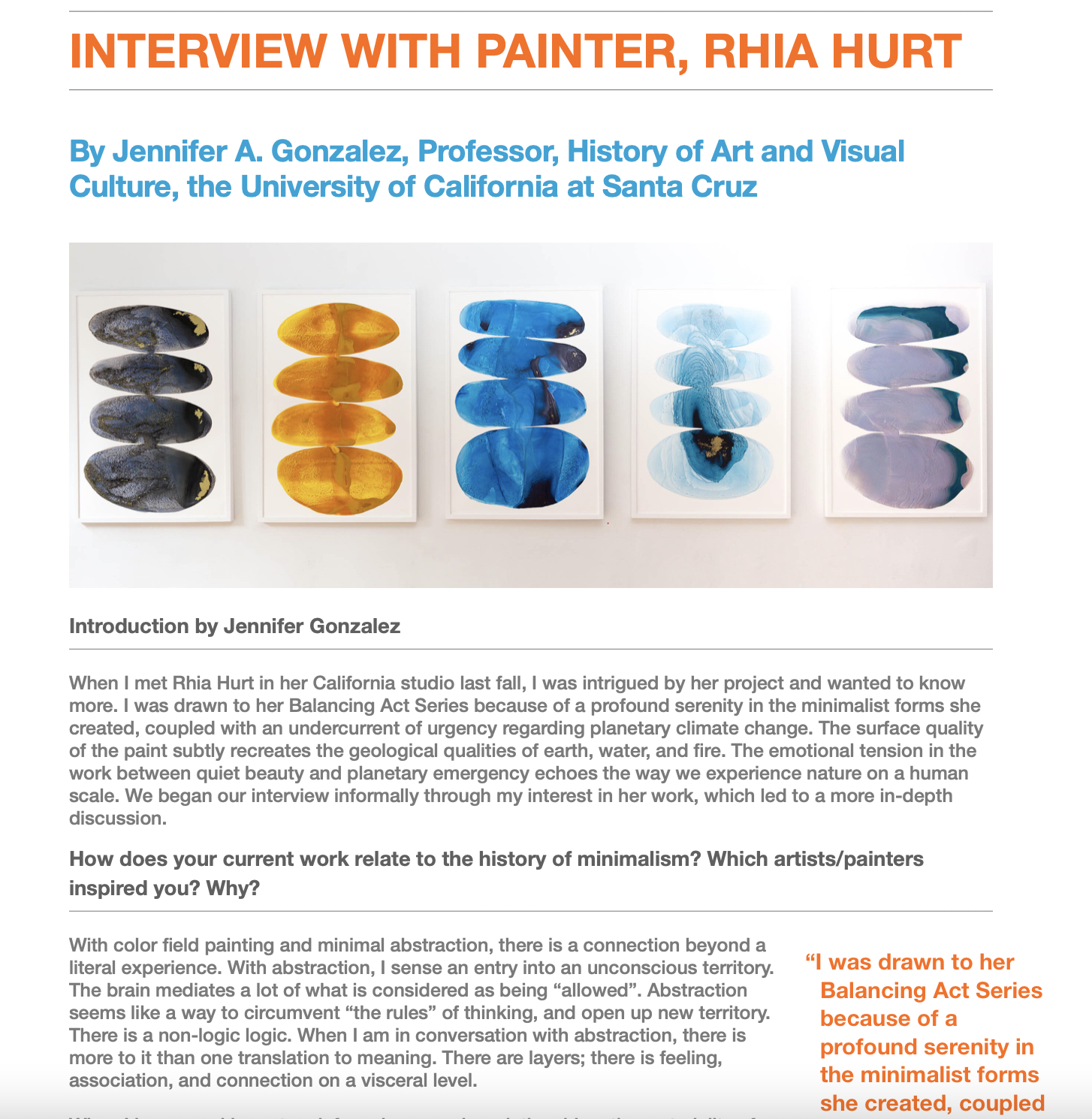 Interview With Painter, Rhia Hurt by Jennifer Gonzalez, Professor History of Art and Visual Culture, UCSC